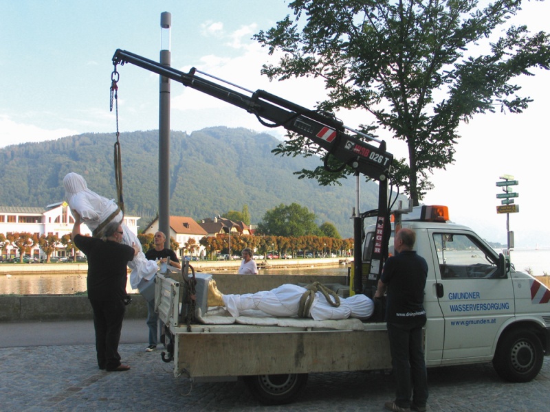 Bei dieser Aktion 2009 in Gmunden kam es zu einer manipulativen Inszenierung mit Galeriebetrieb, Gemeinde, Rezipienten und Medien.